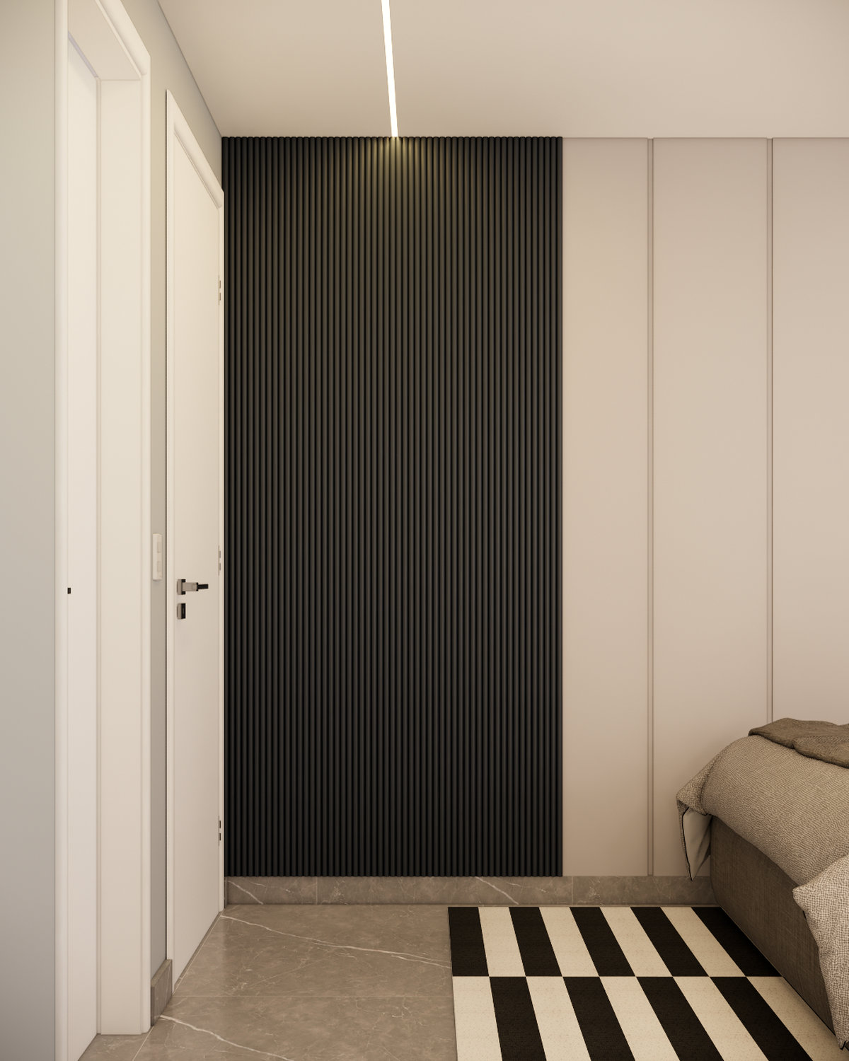 A Casa Fontana di Trevi possui um perfil masculino e elegante. O projeto de interiores da Casa Lazuri, nasceu a partir do desejo de reformular espaços que não mais faziam sentido quando relacionados ao cliente, seu estilo de vida e gosto pessoal. Além disso, outras necessidades de uso da edificação, em relação a estética e funcionalidade precisavam ser atendidas.
